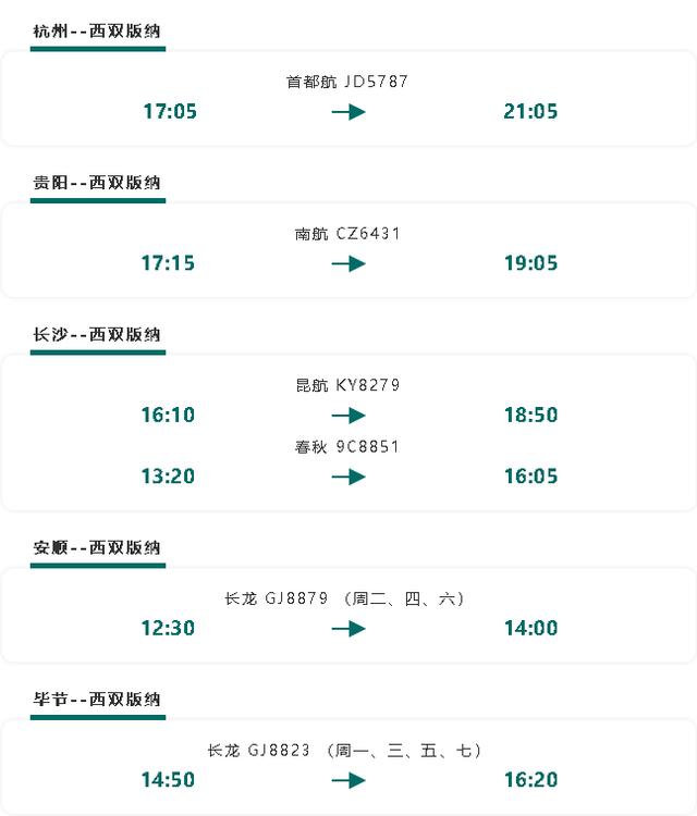 北京自1月31日可直飞西双版纳的消息传开后,近日又新增数条直飞西双版纳的航线!