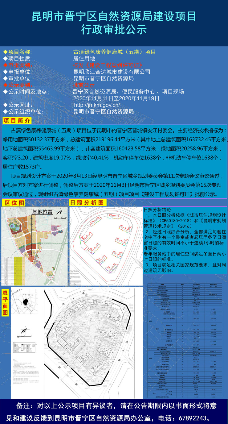 11月11日,晋宁区自然资源局发布了“古滇绿色康养健康城(五期)项目批前公示”。