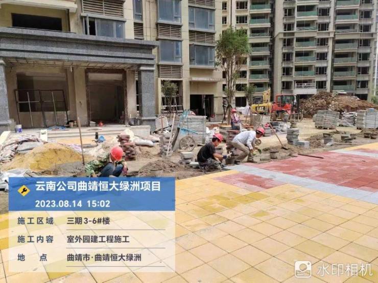 3-6栋公区装修施工,墙地砖、吊顶及腻子、门套石、入户门等施工完成,门廊石材干挂施工完成,剩余灯具开关以及首层大堂零星装饰,待材料到场后安装,总体完成98%。3-6栋周边室外园林乔木种植完成,场地平整完成,红土回填完成60%。3-6栋周边铺装场地基层混凝土硬化浇筑完成,6栋周边非机动车棚及地面仿石砖区域铺装施工完成;4-5栋周边透水砖石材铺装施工完成50%,新增完成30%。3栋周边透水砖石材铺装施工完成20%,新增完成20%。3-6栋永水工程总体施工完成90%,新增完成5%。3-6栋消防电系统施工完成90%;通风系统施工完成90%;消防水系统施工完成90%。3-6栋燃气工程施工,完成5、6栋室外管网敷设安装。