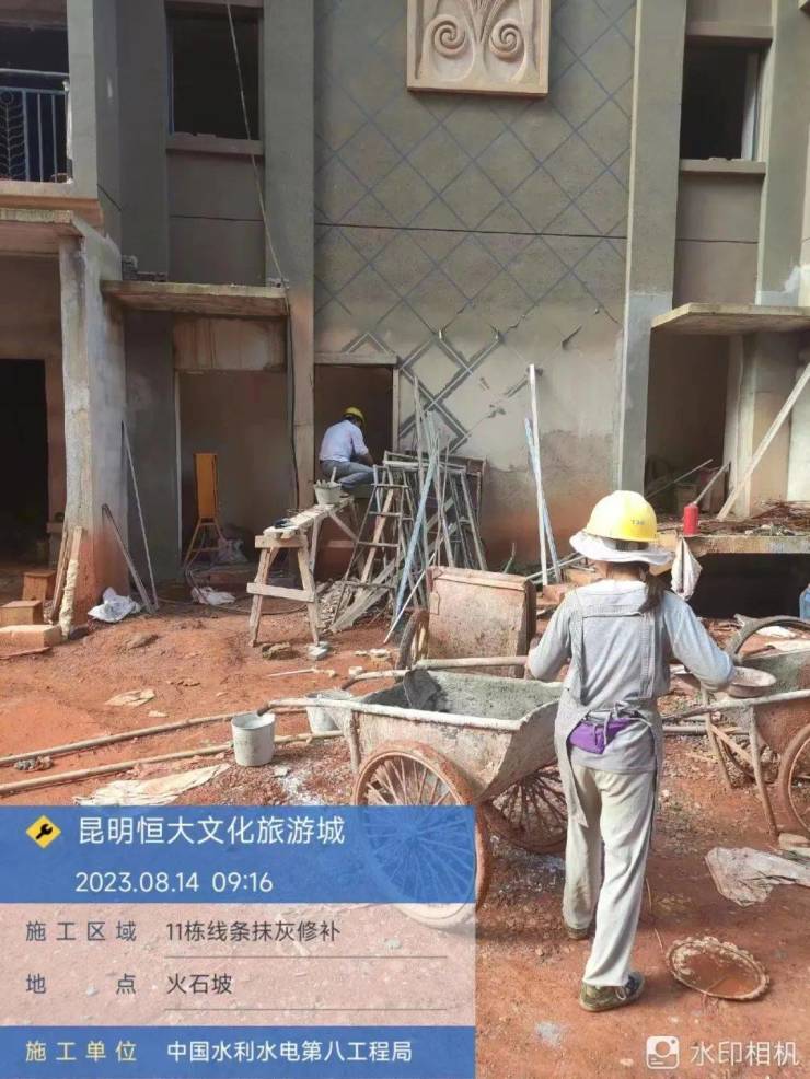 1栋:抹灰完成;墙面腻子完成95%,新增完成15%;外立面底漆完成95%,新增完成25%;真石漆完成80%,新增完成30%。2栋:抹灰完成;墙面腻子完成95%,新增完成15%;外立面底漆完成95%,新增完成25%;真石漆完成85%,新增完成35%。