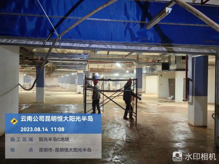 地下室负一层消火栓箱安装完成;风口、风阀安装完成;风机安装完成;负一层消防桥架主线完成;负二层桥架安装完成;自来水管安装完成95%;消火栓主管、泵房风机消防桥架质量整改完成97%。