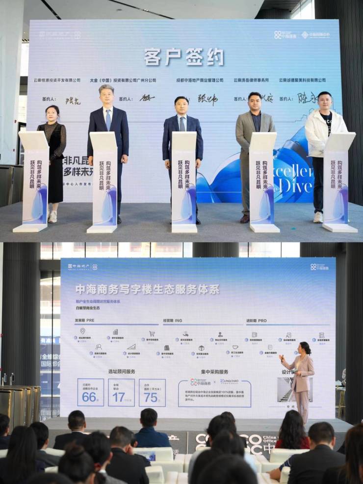 据悉,作为巫家坝CBD首栋投运的纯租赁国际超甲级品质写字楼,昆明中海国际中心引入COOC中海商务领先的资管体系和全国性客户资源,迅速导入了一批知名企业。本次活动中,中海商业西部片区总经理张炜先生与大金空调、恒源投资、诚德聚美、涛岳律所等项目首批客户签约,为巫家坝CBD集聚优势产业、建设城市新核心开启新篇章。