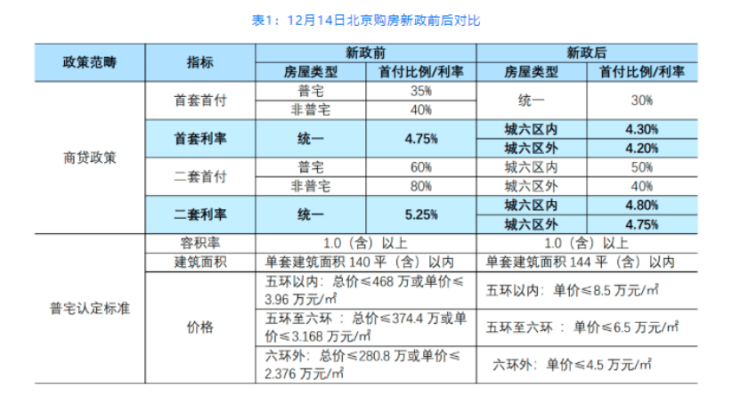 贝壳研究院指出,一线城市房贷利率的下降主要由京沪带动。12月14日京沪出台降首付、降利率、调整普宅认定标准等新政。调整后,北京城六区内首套、二套利率分别为4.30%、4.80%,均较上月降低45BP;城六区外首套、二套利率分别为4.20%、4.75%,分别较上月降低55BP、50BP。