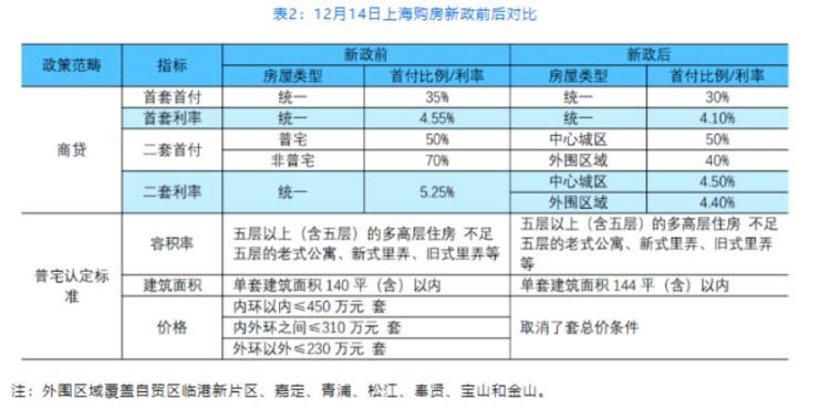 调整后,上海全市首套利率降低45BP至4.10%,中心区域二套利率降低75BP至4.50%,外围区域二套利率降低85BP至4.40%。