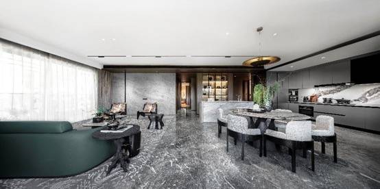 在精装设计上,锦粼天曜同样主张以高定为度,将多重材质之间的肌理奢雅碰撞形成统一,还做到了全屋奢配一线品牌。而对应每一个生活场景,锦粼天曜倾注了细致入微的考量,比如说入户的大尺寸通高玄关柜,将优雅生活与精致收纳平衡得恰到好处;每一个棱角和边沿的匠心处理,都暗藏了精良的制作工艺。