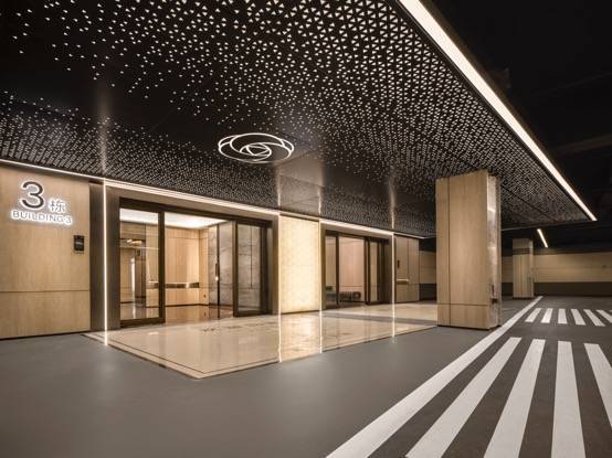 水平的铝板切割出尊崇的归家秩序,水景的摆放也恰到好处,地下光厅更是至关重要的“点睛之笔”,源自劳斯莱斯星空顶灵感,开孔图案伴随着山茶花LOGO旋转,浪漫而华贵。恰到好处的星空光影,取代城市的钢筋水泥,即便路程短暂,也是一场城市奢华的星空归途。