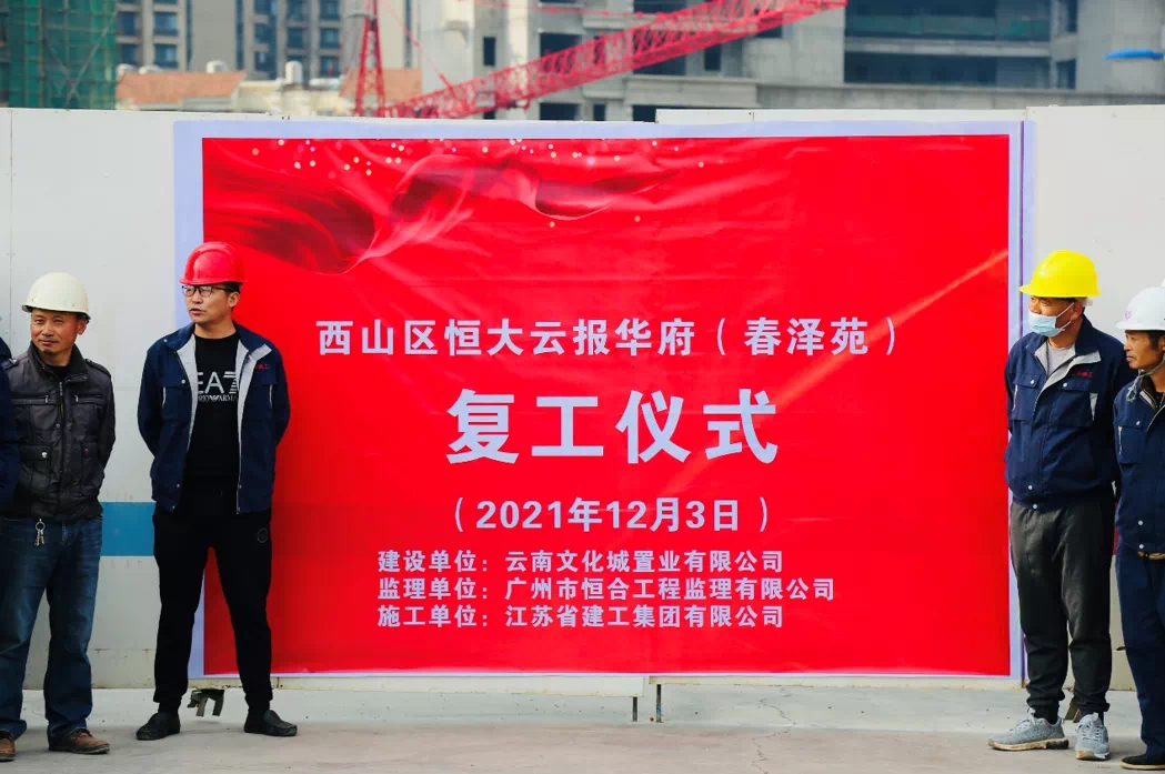 12月3日,昆明恒大云报华府举行复工仪式,政府相关部门负责人、施工方代表、项目负责人及部分业主代表出席仪式。