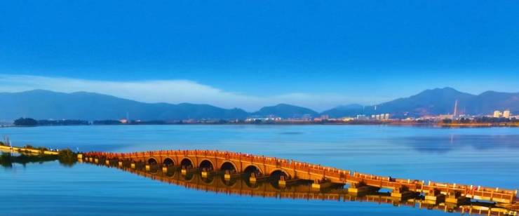 火爆全网的“东风坝”北入口就在这条路线上。穿梭于滇池草海湖心绿水间,自西向东延伸,渐渐转向南北,途经翠堤、芦堤、七孔浮桥和草堤,身临其境回味“西眺美人、苹天苇地、翠羽丹霞、三春杨柳”的美感,更呈现“碧水青山映丹霞,柳岸苇堤迎翠羽”的自然美景。