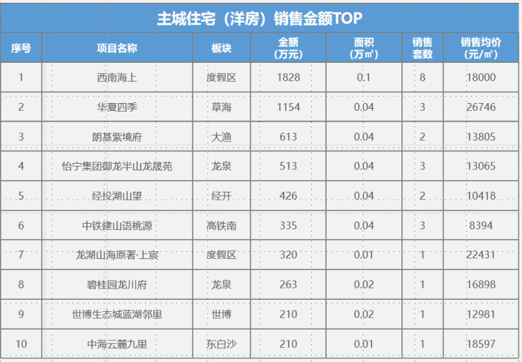 本周住宅成交3.8万㎡,环比下降45%;主力成交项目为建投朝朝暮暮28套,0.38万㎡ ;招商依云国际社区13套,0.16万㎡;建投春城華府10套,0.14万㎡等。