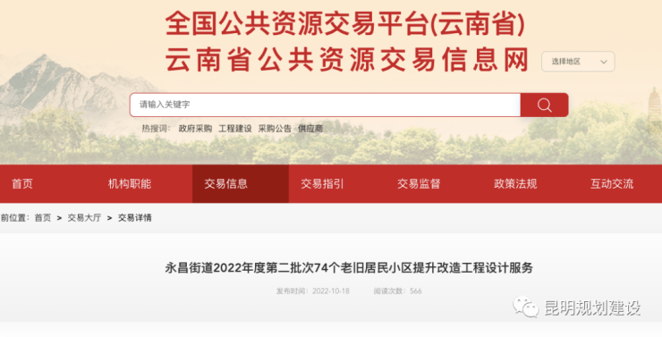 10月18日,云南省公共资源交易信息网发布《永昌街道2022年度第二批次74个老旧居民小区提升改造工程设计服务》招标计划表,计划表显示,本次老旧小区改造预计投入资金约117万元。