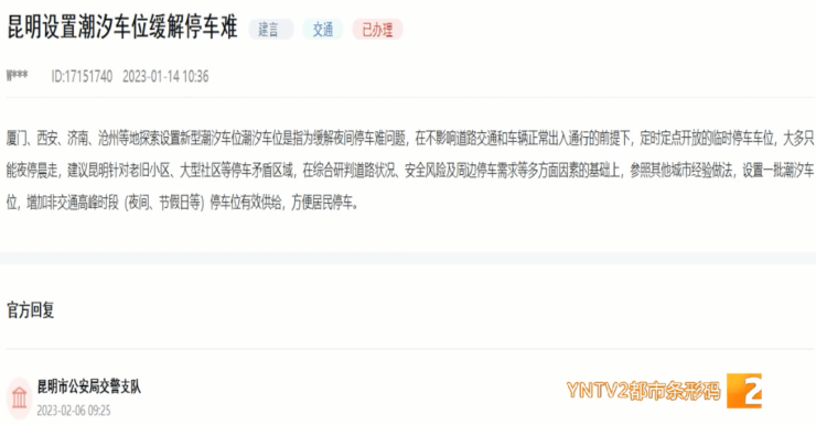 夜停晨走,能否设置潮汐车位?昆明交警这样回复!