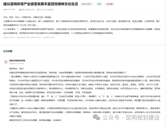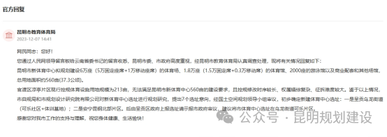 昆明市教育体育局回复: