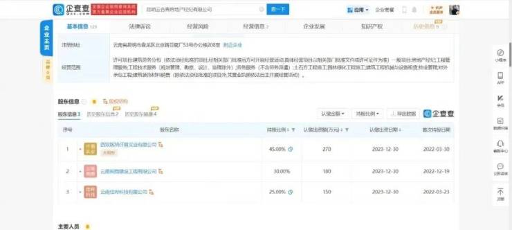 该公司有3个股东,分别是西双版纳仟易实业有限公司、云南桐鼎建设工程有限公司、云南佳哔科技有限公司,且3家公司实控人都为自然人。