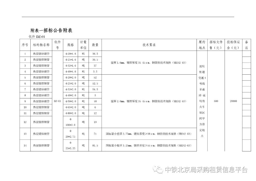中铁北京工程局昆明市轨道交通4号线安装2标项目部动照电线管采购招标公告