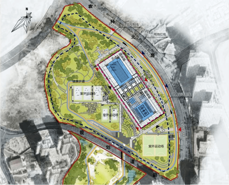 总用地面积约总用地面积约66000㎡(99亩),总建筑面积约21551㎡,规划有篮球馆、游泳馆、室外运动场等。依托政府“大健康走廊”发展战略,结合项目“全民健康”定位,盘龙区全民健身中心项目将融市民运动健康与游客文旅体验为一体。