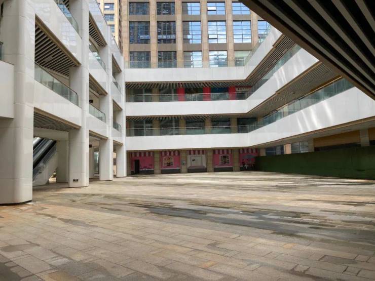 8月24日,都市时报·大象房鉴所记者在位于呈贡区春融街地铁站一侧的置信银河广场项目看到,项目三期主体工程还未完工,楼栋还未封顶,现场没有工人,也没有听到施工声响。置信银河广场A区有几家餐饮和服装店铺还在营业,B区则没有店铺开门营业。