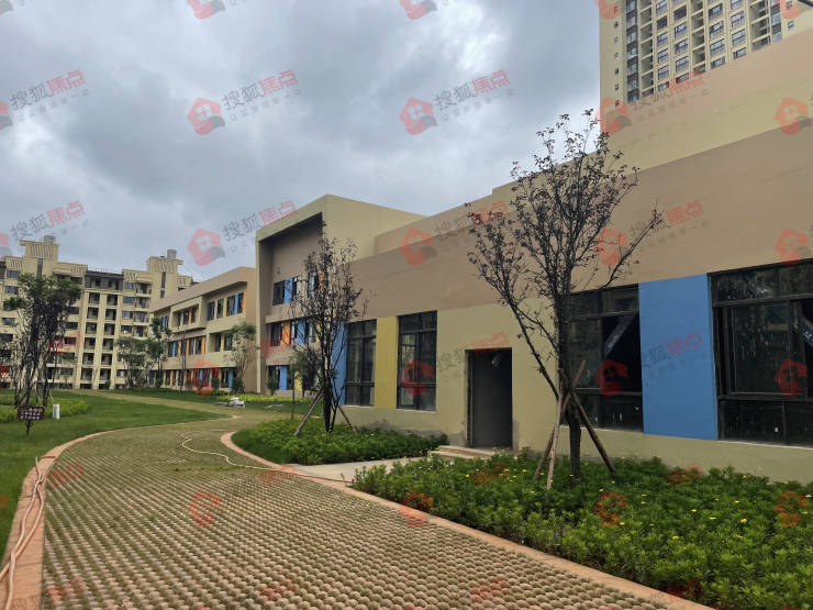 幼儿园从外部看也已经基本建成,只是地面建筑垃圾还未清理,底商也是同样的情况,幼儿园部分外立面是水泥墙面,粉刷完成并清理干净后应该可以投入使用