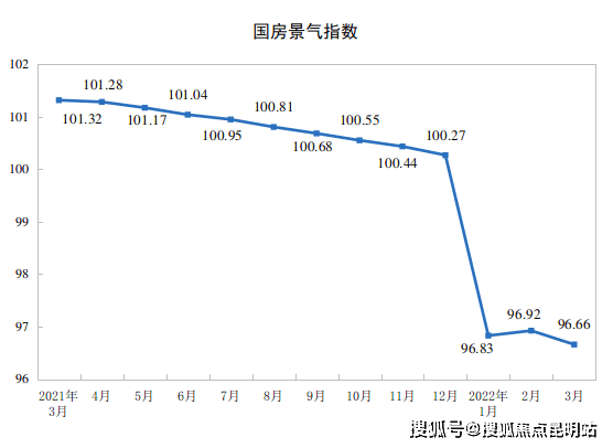 3月份,房地产开发景气指数(简称“国房景气指数”)为96.66。