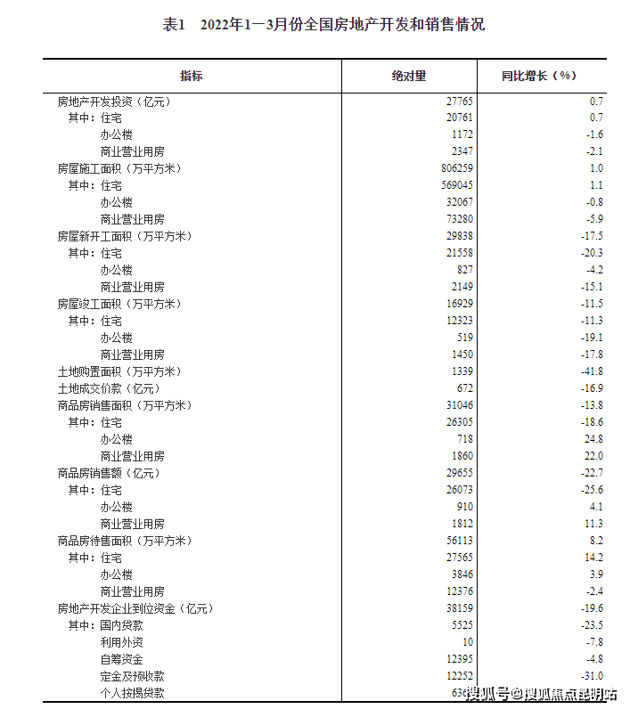 2022年1-3月份全国房地产开发投资增长0.7%