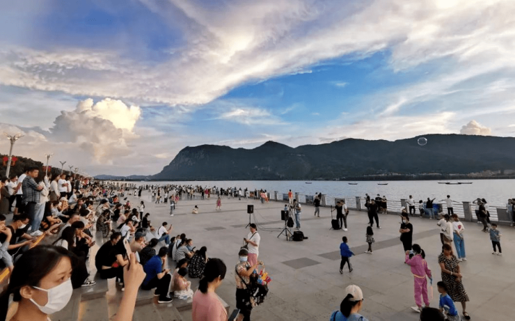 (滇池大坝边的游客 图自:昆报头条)