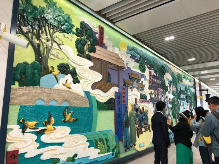 该站点艺术文化墙以清朝著名学者陈荣昌诗词中的“酒楼灯影、秋窗夜月、精舍书声、春树晓莺、绿杨息阴、莲寺观鱼、翠荷听雨、柳营洗马”翠湖八景进行集中展示,尽管“八景”中的部分景致已经不在,但可以从诗中领略到百年前的翠湖之美,呈现出站点周边深厚的历史文化底蕴。