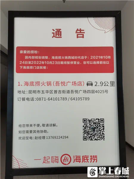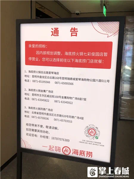 近日海底捞火锅通过微博发布公告宣布12月31日前将逐步关停300家门店新闻传送门↓太突然!知名巨头宣布关停300家门店!苦果只能自己一口一口咽...昆明市场上有哪些海底捞门店关门了?一起来看看↓↓↓