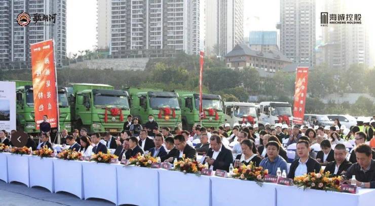 西双版纳州委常委、州委秘书长、州委州直机关工委书记徐健斌,西双版纳傣族自治州人民政府副州长胡向京,州政协党组副书记、副主席袁松青,景洪市人民政府市长刀海清,景洪市人民政府副市长李畅,景洪工业和信息化产业集聚区嘎洒片区管理委员会主任唐莉,市发改局,市重点项目指挥部,市自然资源局,市住建局,市文旅局等各单位代表,以及海诚控股集团董事长周昆、海诚控股集团副总裁周永,歌朗河项目公司团队、施工单位团队和各大主流媒体、社会各界人士齐聚活动现场,共同见证这一重要时刻。