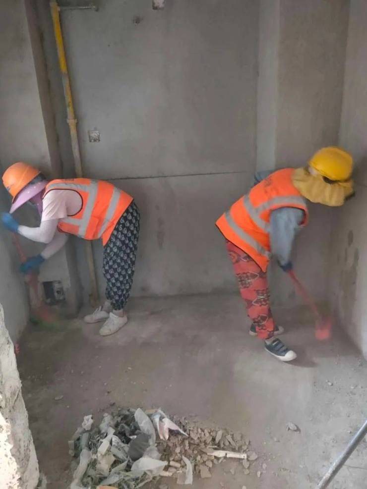 五区后浇板二次改造:后浇板剔槽完成189户,模板搭架完成193块,钢筋绑扎完成191块,二次板混凝土浇筑完成187块板。小院围墙改造:门头柱完成浇筑336棵,门头钢筋绑扎完成128棵,门头混凝土完成115棵,围墙构造柱完成混凝凝土浇筑215颗。G户型小院围墙砌体完成100%,抹灰完成95%,F户型砌体完成70%,K户型砌体完成50%。园林二次改造移苗完成J、G、F户型100%,K户型完成70%。园建目前正在准备材料小院道路维修完成100%,道路排水沟铺贴完成30%,广场道路石材铺贴完成50%。