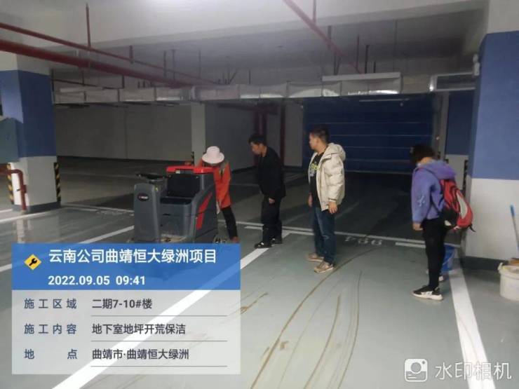 7-10#楼开荒保洁进场施工,室内垃圾清理完成,室内玻璃清洗开荒,地下室地坪开荒。