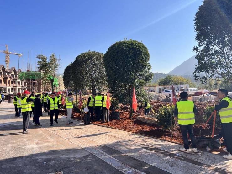昆明公司全体员工在关键时刻肩负起了浩创人的责任和担当。自发到达浩创悦山湖的项目现场进行树木种植等工作,紧张有序的施工作业现场,呈现出一派热火朝天的景象。