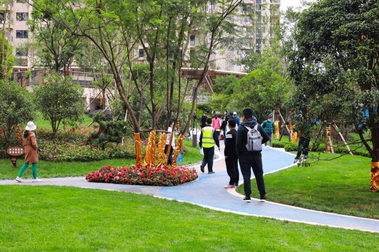如果说建筑品质是富康城·紫悦台交付满意度的基础,那社区园林的超预期实景呈现则是此次交付的主要加分项之一,前来验房的业主张先生便表示:“富康城·紫悦台给我印象最深的就是实景园林,真的让人眼前一亮,太美了!”