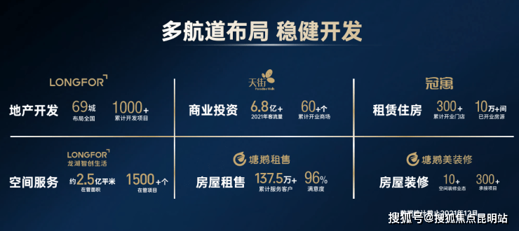 2022年,龙湖提出“至善龙湖 与城共进”的品牌理念,旨在通过地产开发、商业投资、长租公寓、智创生活、房屋租售、房屋装修六大主航道业务的加持,多航道贯彻“善待你一生”的品牌理念,更好地赋能昆明城市发展。