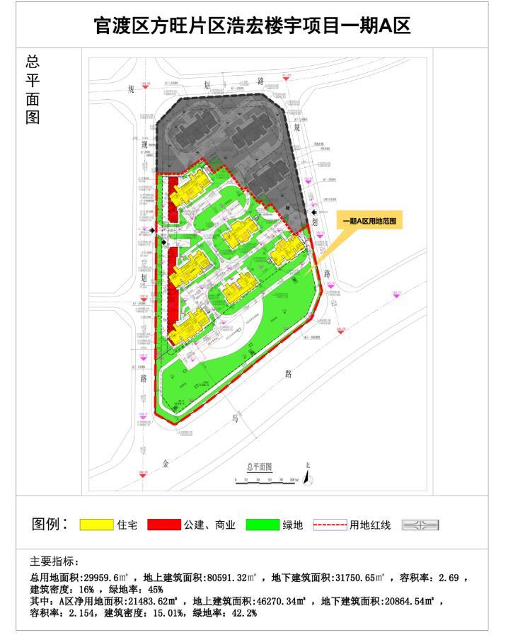 规划显示,奥园(浩宏楼宇项目)总用地面积29959.6m²,地上建筑面积80591.32 m²,地下建筑面积31750.65 m²,容积率2.69,建筑密度16%,绿地率45%。该地块共9栋高层住宅楼,1栋、8栋、9栋为14层住宅,7栋为16层住宅,2栋、3栋、4栋、5栋、6栋为26-29层住宅;其中1#,2#,3#楼底层沿街做商业及配套用房,2#楼首层用做养老服务用房。