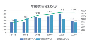蓝皮书数据还提到:昆明房地产业发展一直在持续增长,1998年昆明住宅销售均价为1600元/平方米,到2021年时,住宅销售均价升至14500元/平方米,年均涨幅约10%。