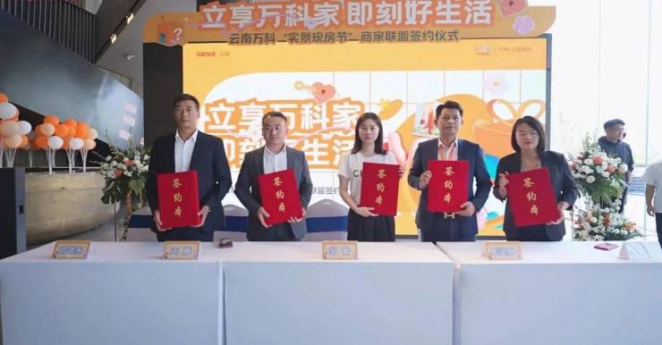 接下来,在与会来宾、媒体伙伴的共同见证下,云南万科与众多品牌商家,正式签署“实景现房节”商家联盟协议,宣布此次战略合作正式启动,云南万科业主权益体系正式发布。