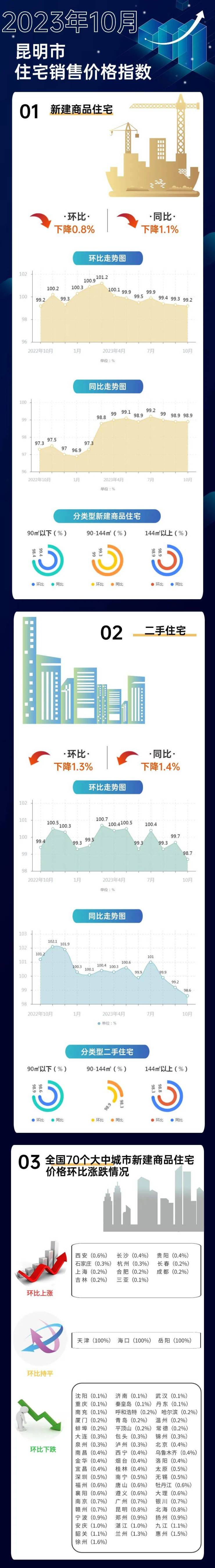 【数据发布】2023年10月昆明市住宅销售价格指数