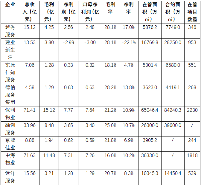 结合盈利和营收表现,已经披露业绩的代表物企中,保利物业、中海物业、京佳物业、越秀服务、东原仁知服务都实现了营收和净利润的双增。