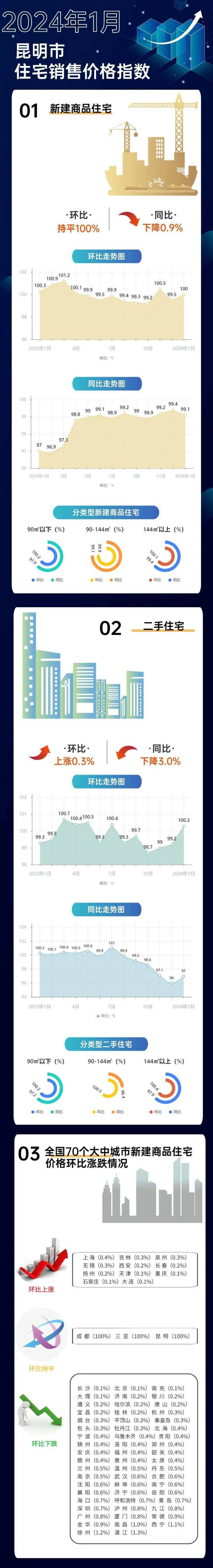 2024年1月昆明市住宅销售价格指数公布 昆明新房房价环比持平