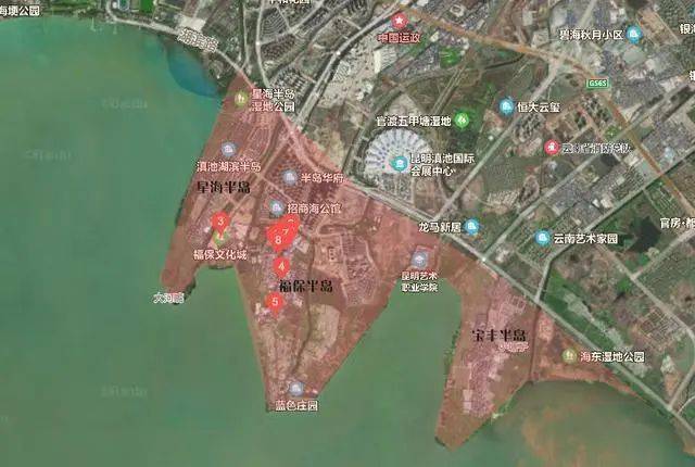 滇池的三个半岛从左到右分别是星海半岛、福保半岛及宝丰半岛,它们是昆明城区离滇池水面最近的地块,拥有稀缺的滨湖景观资源,适宜居住。福保村正式位于滇池三个半岛之一的福保半岛上。
