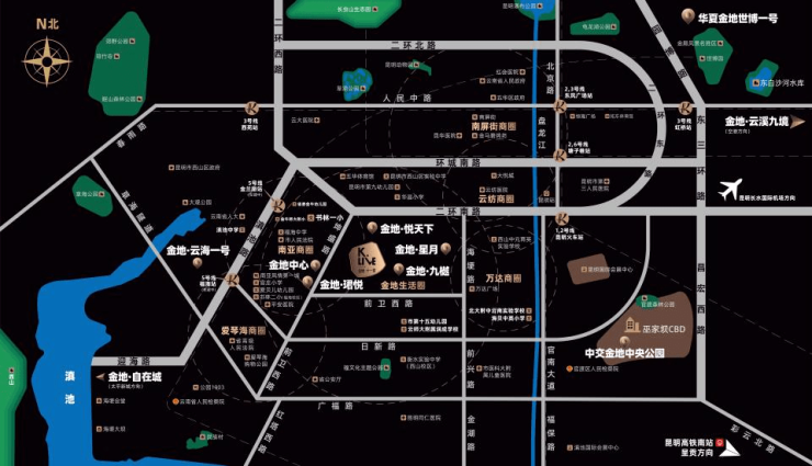 项目周边拥有前卫西路、坤盛路、滇池路、日新中路等城市主干道,多条公交线路环绕,交通便利。项目距离已开通的地铁5号线金兰路站、严家地站约1.5km左右。