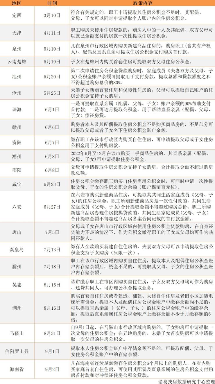安徽省马鞍山市楼市新政也指出,自9月1日起,在马鞍山市行政区域内购房的,子女购房可申请提取一次父母的住房公积金;在异地购房的,未婚子女首次购房可以申请提取一次父母的住房公积金。