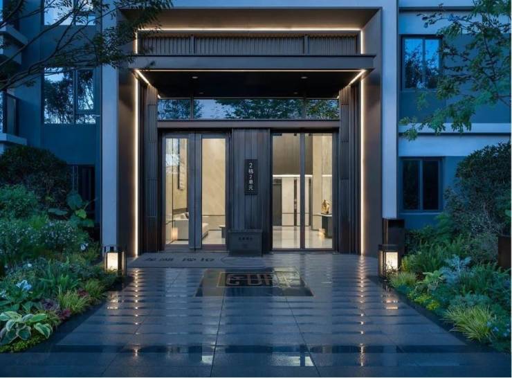 在有限的场地尺度上,利用乔灌草的巧妙搭配,简洁而又富有层次,单元入口搭配精致纹理地雕,景墙结合灯光营造极具酒店感的品质氛围。方寸之间,已见生活。