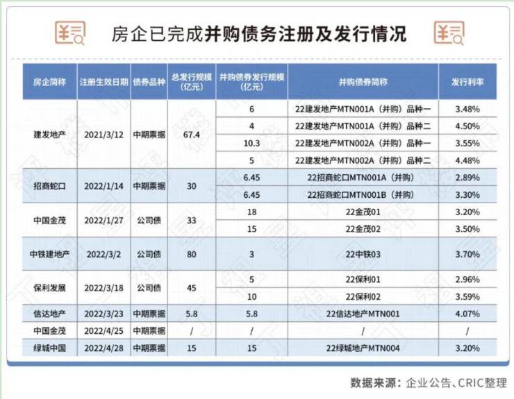 除银行并购贷款,已有7家房企完成并购债券注册。与银行并购贷款不同,并购债券门槛比较高,