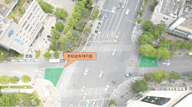 通过增设机动车待行区,提高路口空间利用率,提升通行效率;通过交叉口设施优化、增设非机动车待行区,行人和非机动车的过街安全得到进一步的保障。