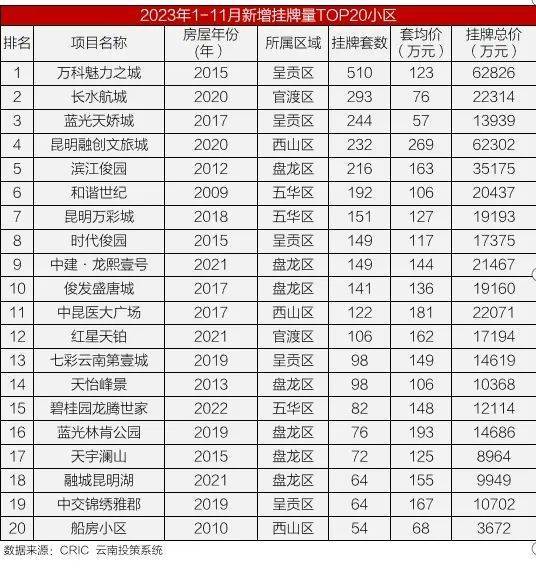 昆明二手房挂牌量骤增 新增最多的楼盘是这个