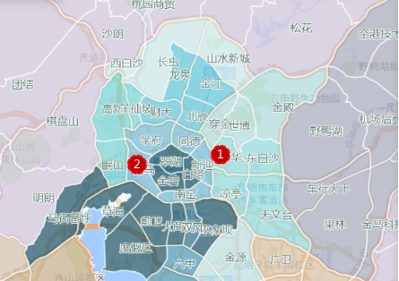 本月成交主力为呈贡(花香满径0.94万㎡、卓越滇池晴翠0.65万㎡ ) 、滇池(筑友双河湾0.69万㎡ )及东市(白沙理想居0.74万㎡)板块;