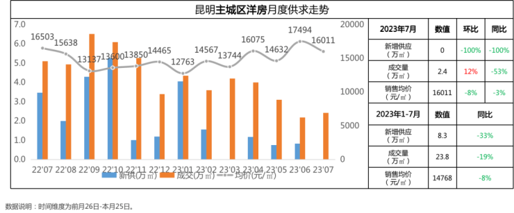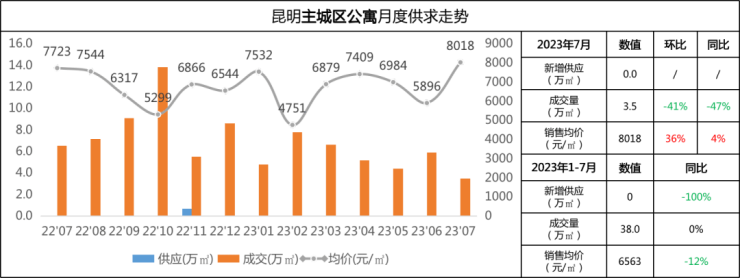 2023年7月昆明楼市:本月住宅成交量跌价稳 市场底部显现