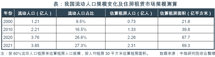 (一)流动人口规模较大,“租购并举”持续推进,将有效推动住房租赁市场规模扩大。