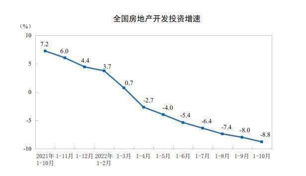 从供应端情况看,国家统计局数据显示,1-10月份,全国房地产开发投资113945亿元,同比下降8.8%;其中,住宅投资86520亿元,下降8.3%。