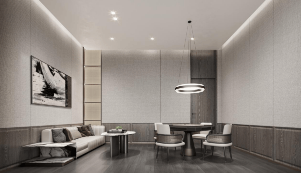 此外,地下车库光厅也是此次展区开放的重点,地库的照明系统经过精心设计,增加了多项配置,营造出光厅视觉效果,不仅提高了地库的照明质量,还有效缓和了入库眩光,为业主们提供了更加舒适的行车体验;其次,地下光厅在细节上也做得非常出色,从入口到地库,每一个细节都经过精心打磨,每一处选材都经过慎重考究,无论是地面、墙面还是天花板,都展现出高品质的装修效果。